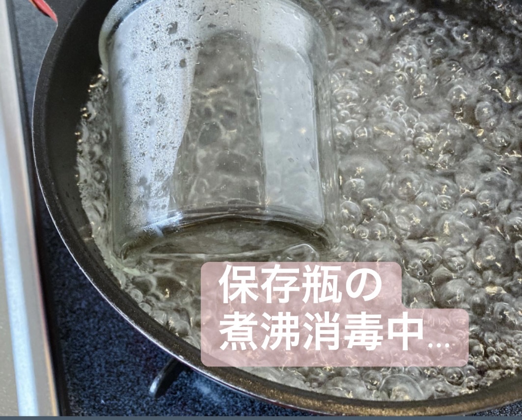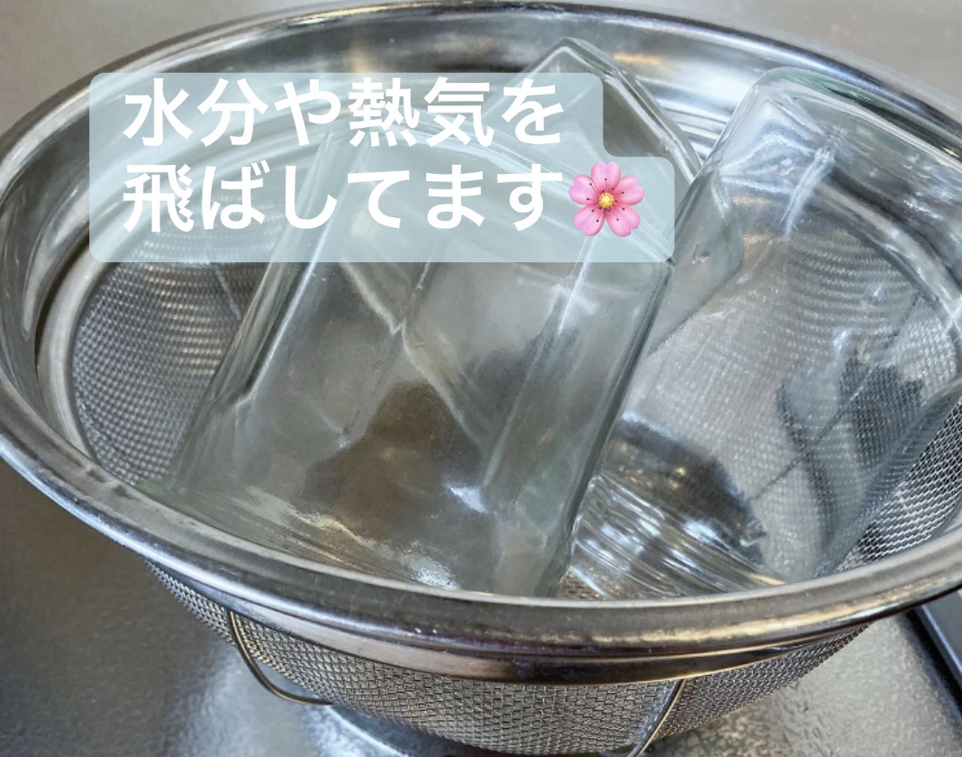 次に、煮沸消毒した瓶の水気をしっかり飛ばします。
